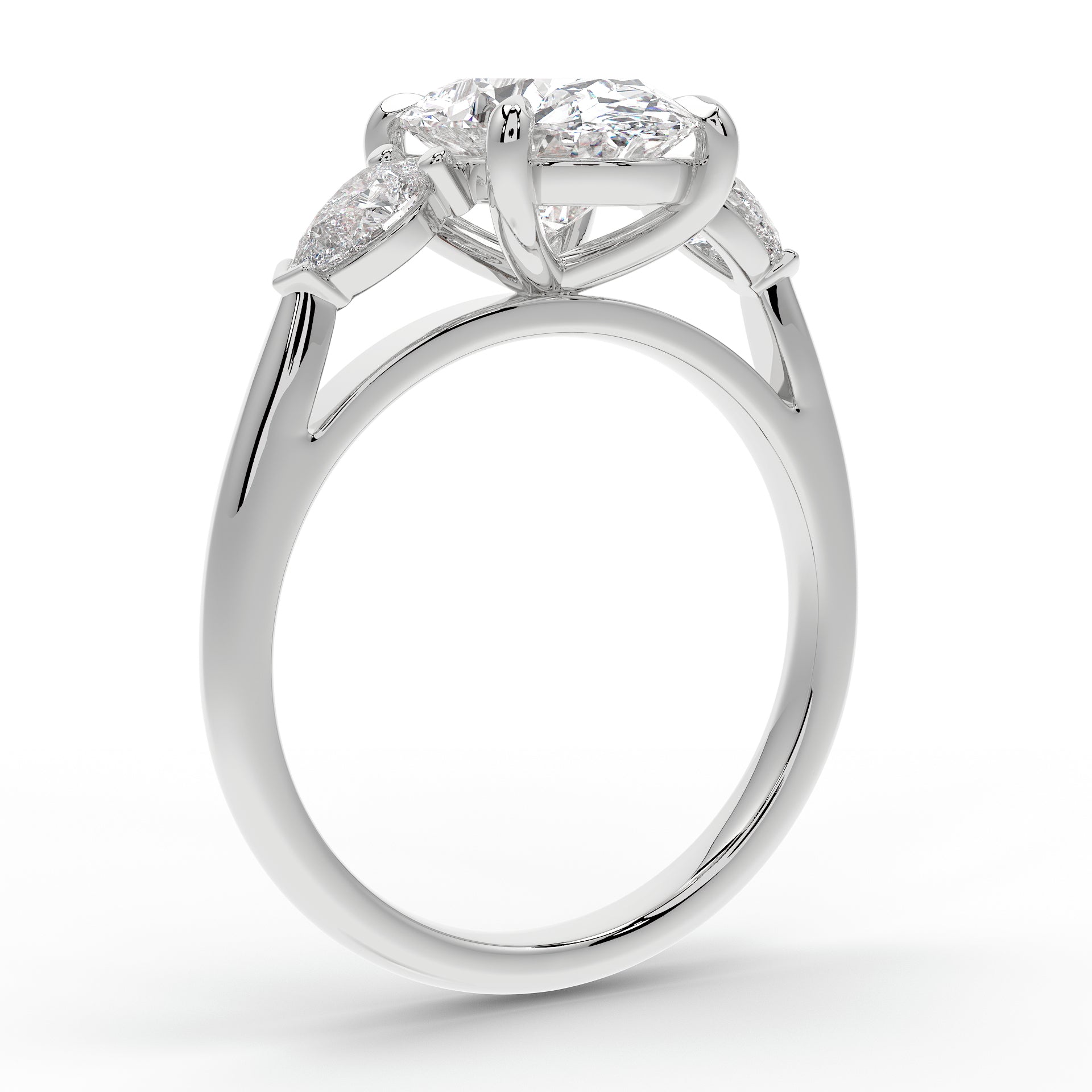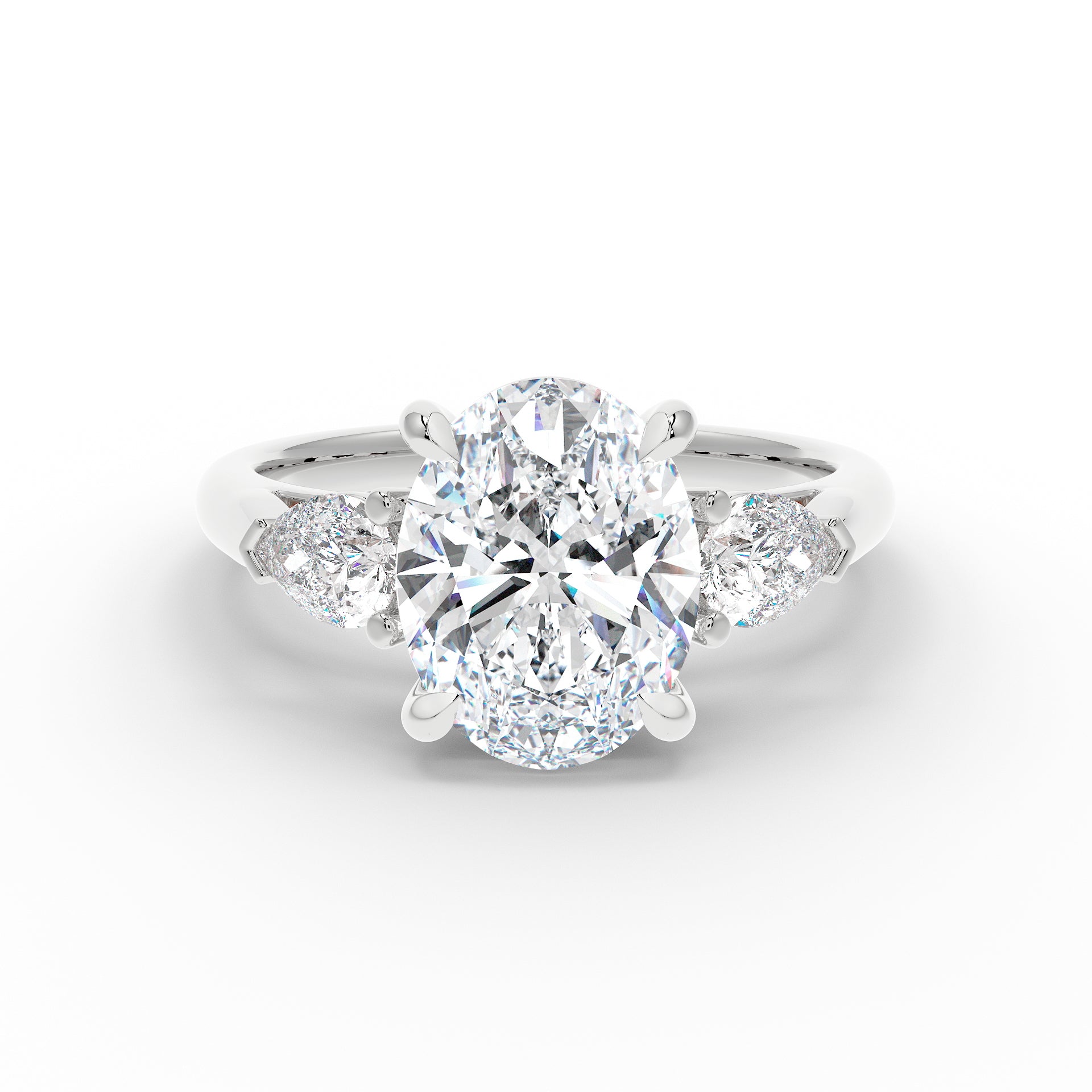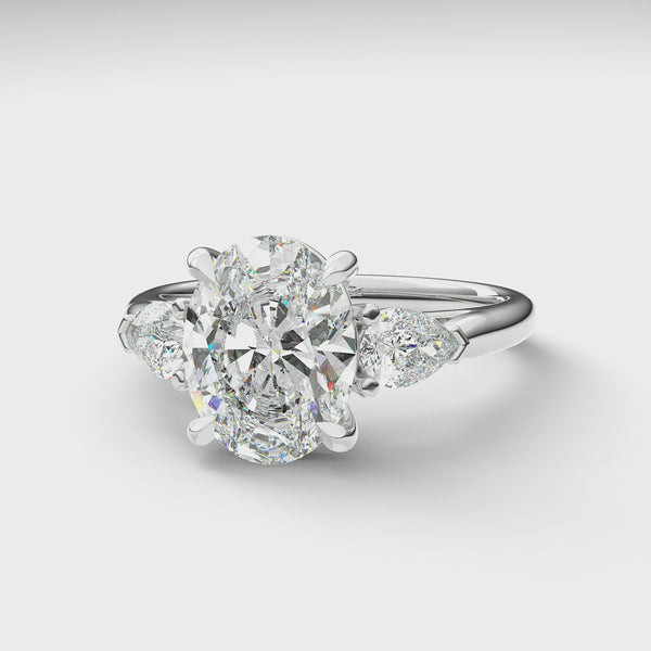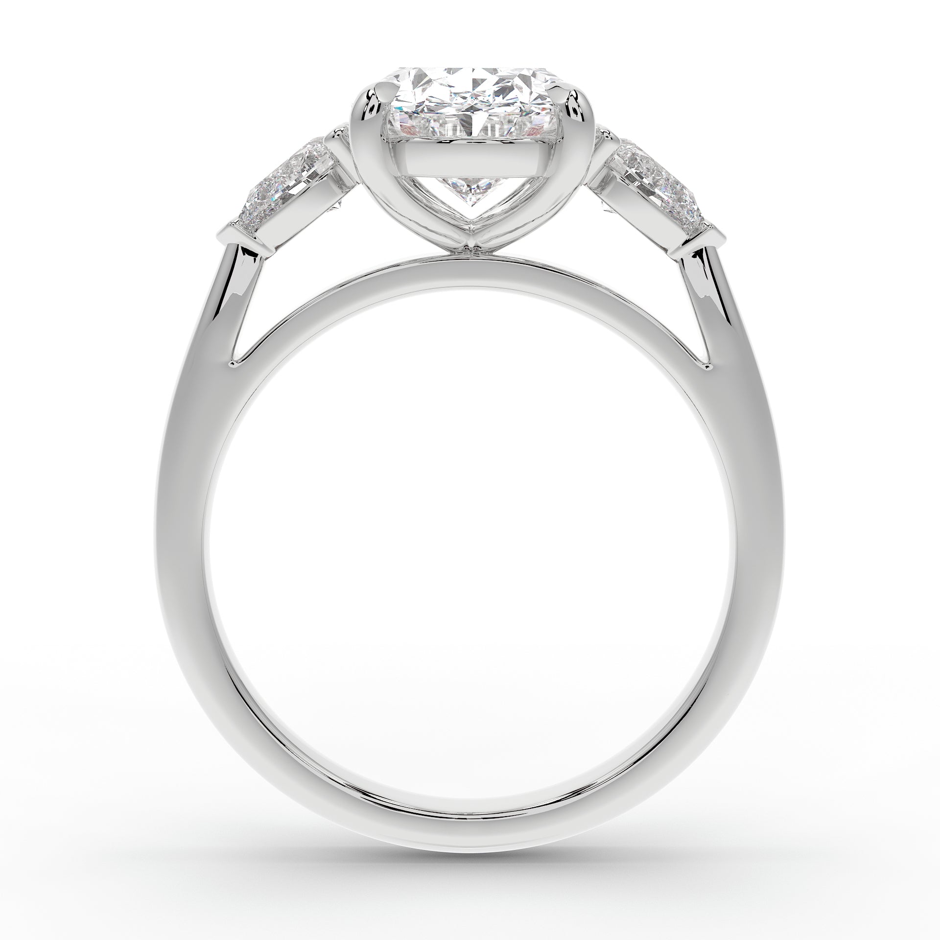 Introducing The Callisto | Oval Cut Trilogy Style Diamond Ring, a perfect blend of classic elegance and modern sophistication. This stunning trilogy ring showcases three oval-cut diamonds, elegantly set in a floating design that enhances their brilliance.
