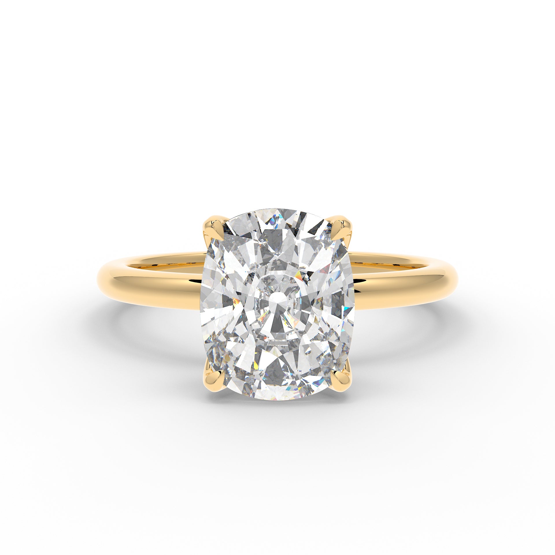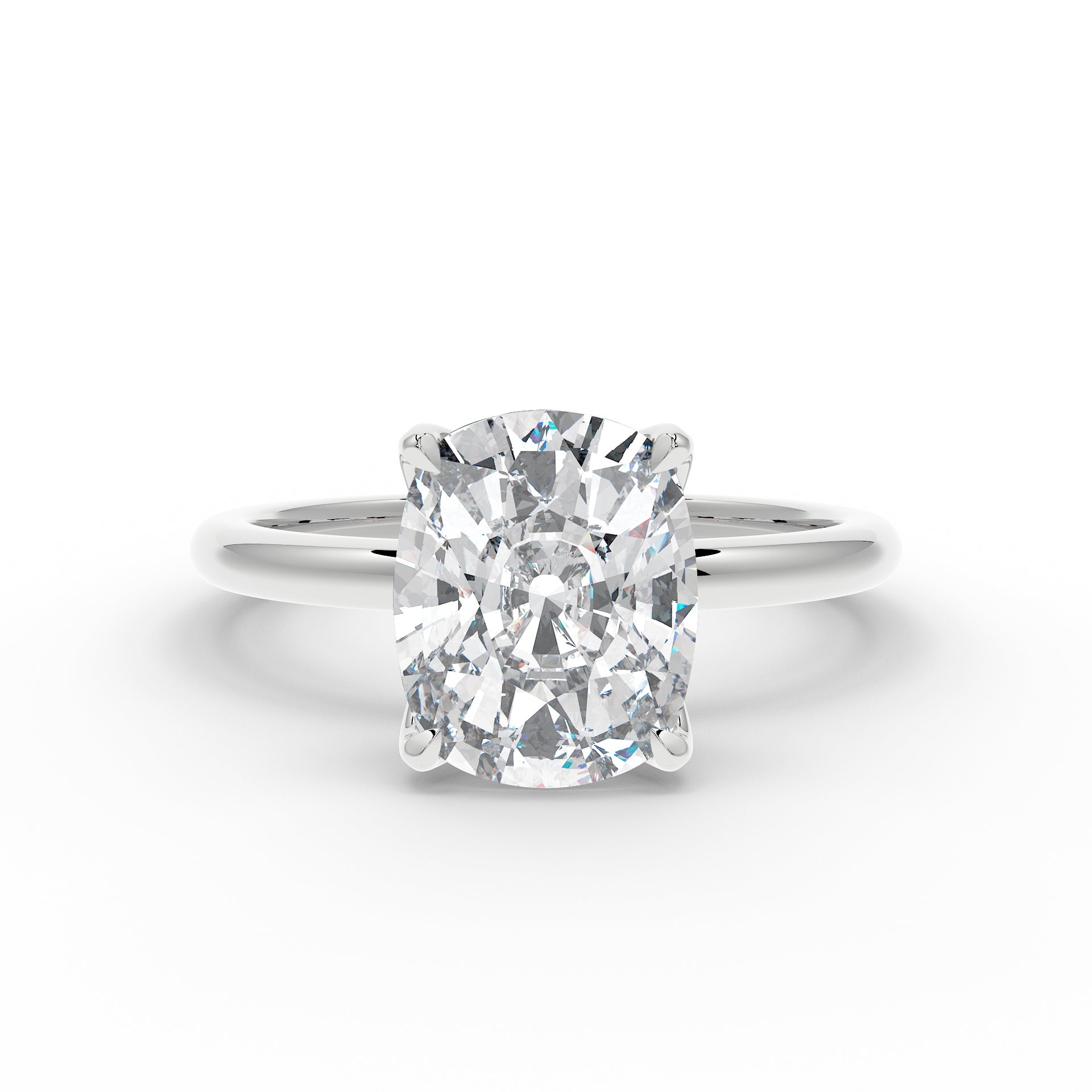 Introducing The Flora Solitaire | Cushion Cut Diamond Ring, a perfect blend of natural beauty and timeless elegance. This exquisite ring features a cushion-cut diamond, set in a classic solitaire design with delicate petal-inspired details that gracefully frame the diamond. The non-bezel setting allows the diamond to shine brilliantly, showcasing its unique sparkle and shape. Key features include a refined petal design, a classic solitaire setting, and a cushion-cut diamond.