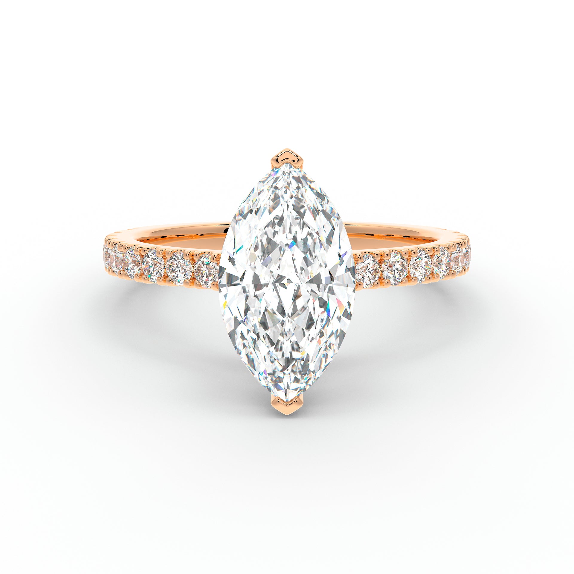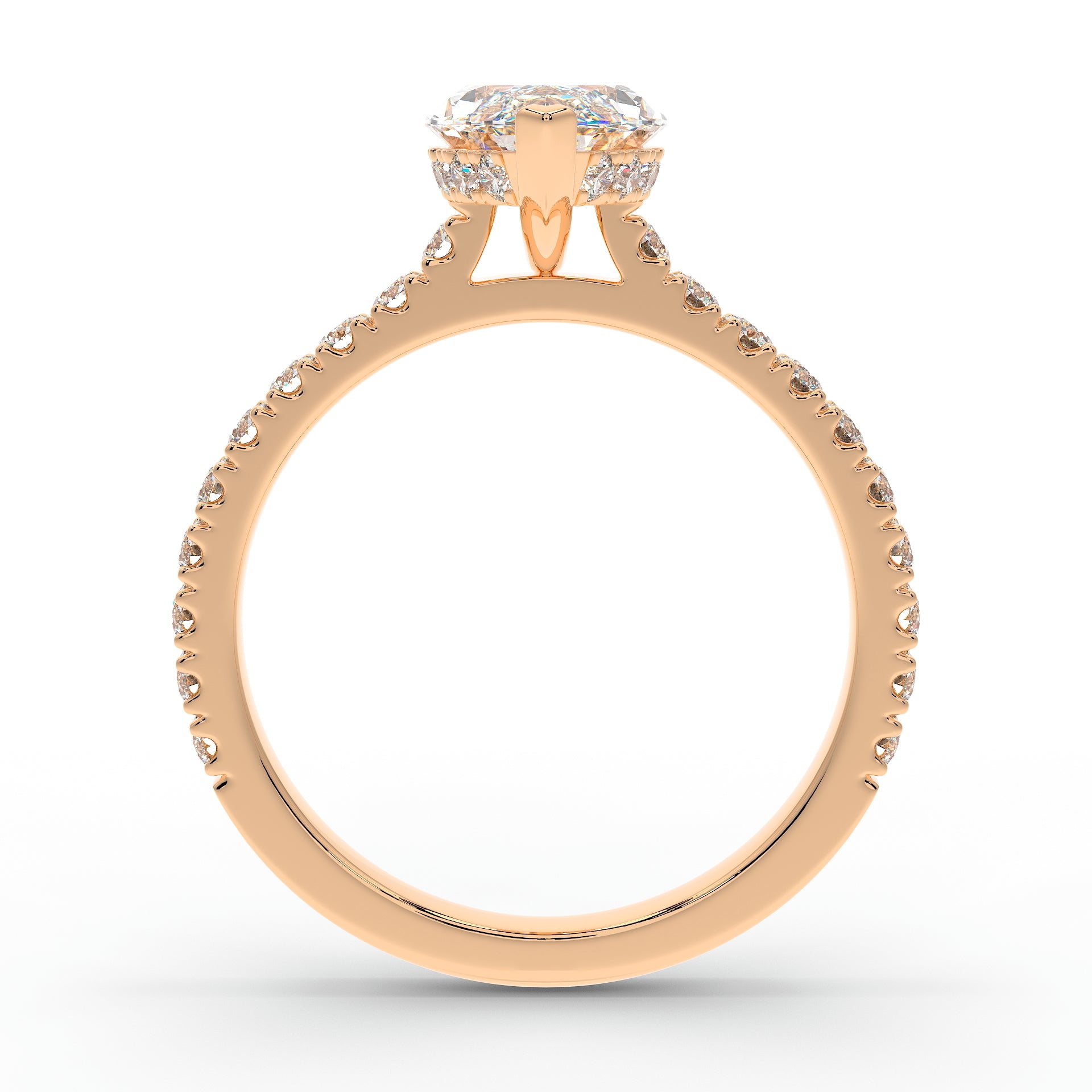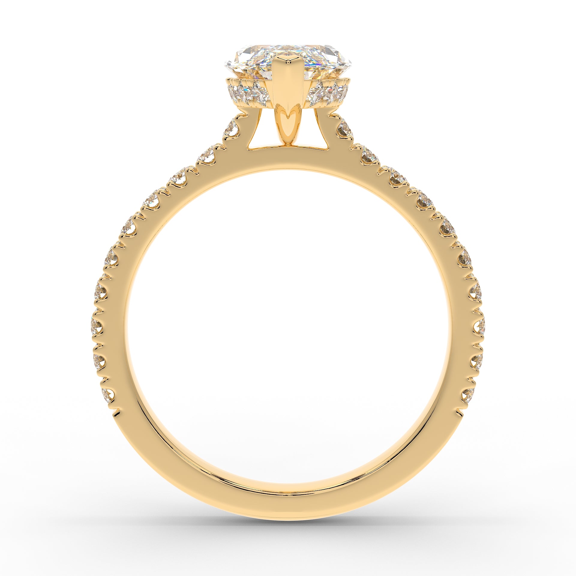 Introducing The Mira Luxe | Marquise Cut Diamond Ring, a stunning fusion of timeless elegance and modern luxury. This exquisite ring features a marquise-cut diamond, beautifully set in a classic cathedral design that enhances its brilliance. The diamond is securely held by custom talon claws and surrounded by a hidden halo of diamonds for an extra touch of sparkle. The band is adorned with pave-set diamonds along 60% of the shoulders, adding to the ring’s radiant allure. Key features include a hidden diamond halo, pave-set shoulders, and a refined cathedral setting.