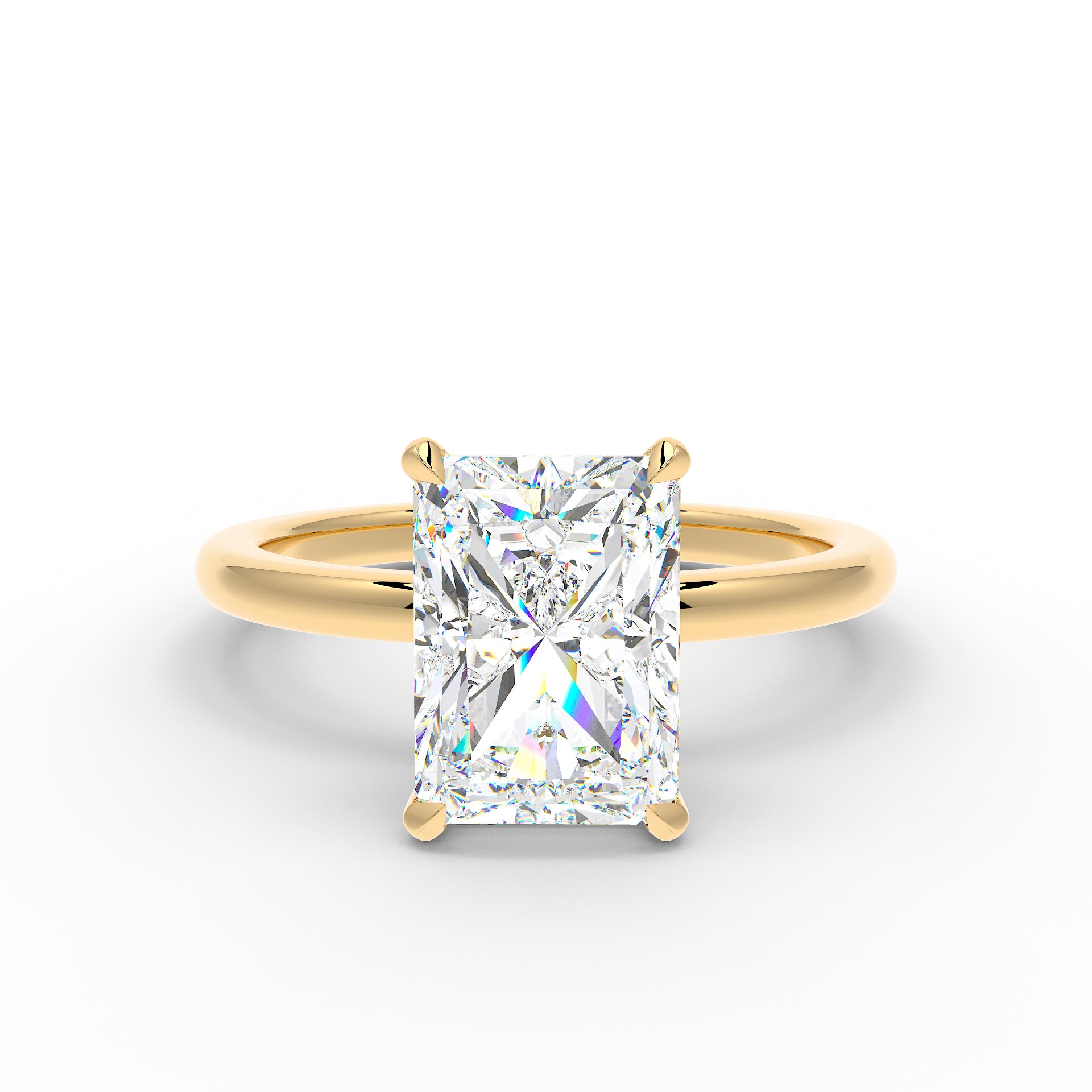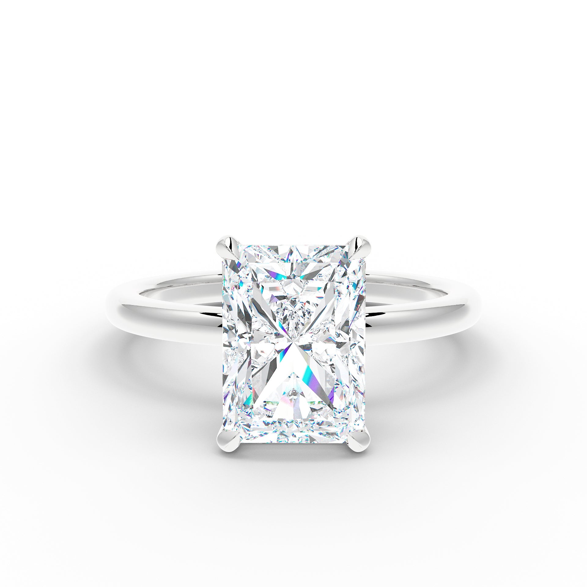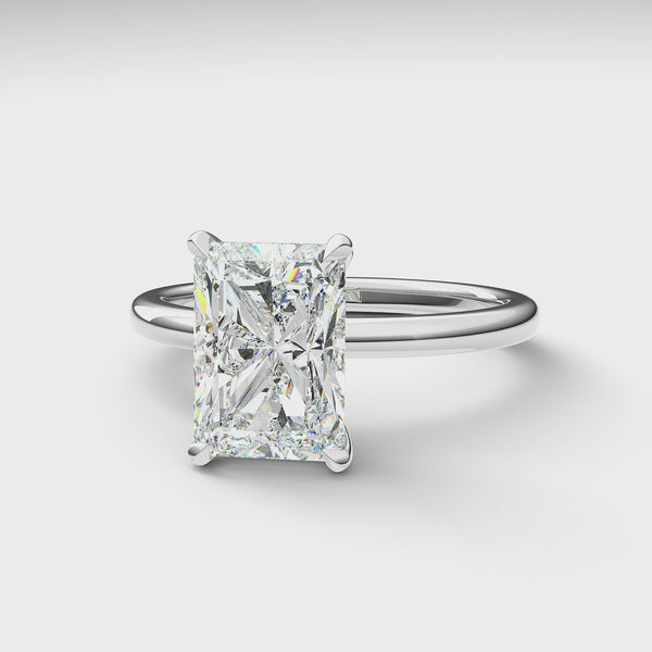 Introducing The Nova | Radiant Cut Solitaire Diamond Ring, where timeless elegance meets contemporary design. This exquisite engagement ring features a radiant-cut diamond, showcased in a floating setting that amplifies its brilliance. Custom talon claws securely hold the diamond, adding a distinctive touch of sophistication. Key features include a classic solitaire design, a refined gallery bar, and a setting that accentuates the ring’s sleek, modern lines.
