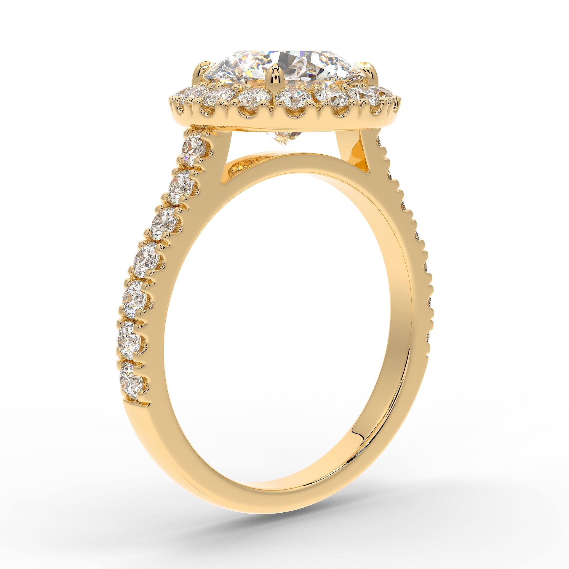 Introducing The Saturn | Round Brilliant Cut Diamond Ring, a stunning representation of timeless elegance. This exquisite ring features a round brilliant-cut diamond, encircled by a dazzling halo-inspired design that enhances the diamond’s radiant sparkle. The halo adds a captivating brilliance, symbolising the beauty of the cosmos, while the classic setting elevates the centre stone, making it the focal point. Key features include a halo design, a round brilliant-cut diamond, and a refined setting.